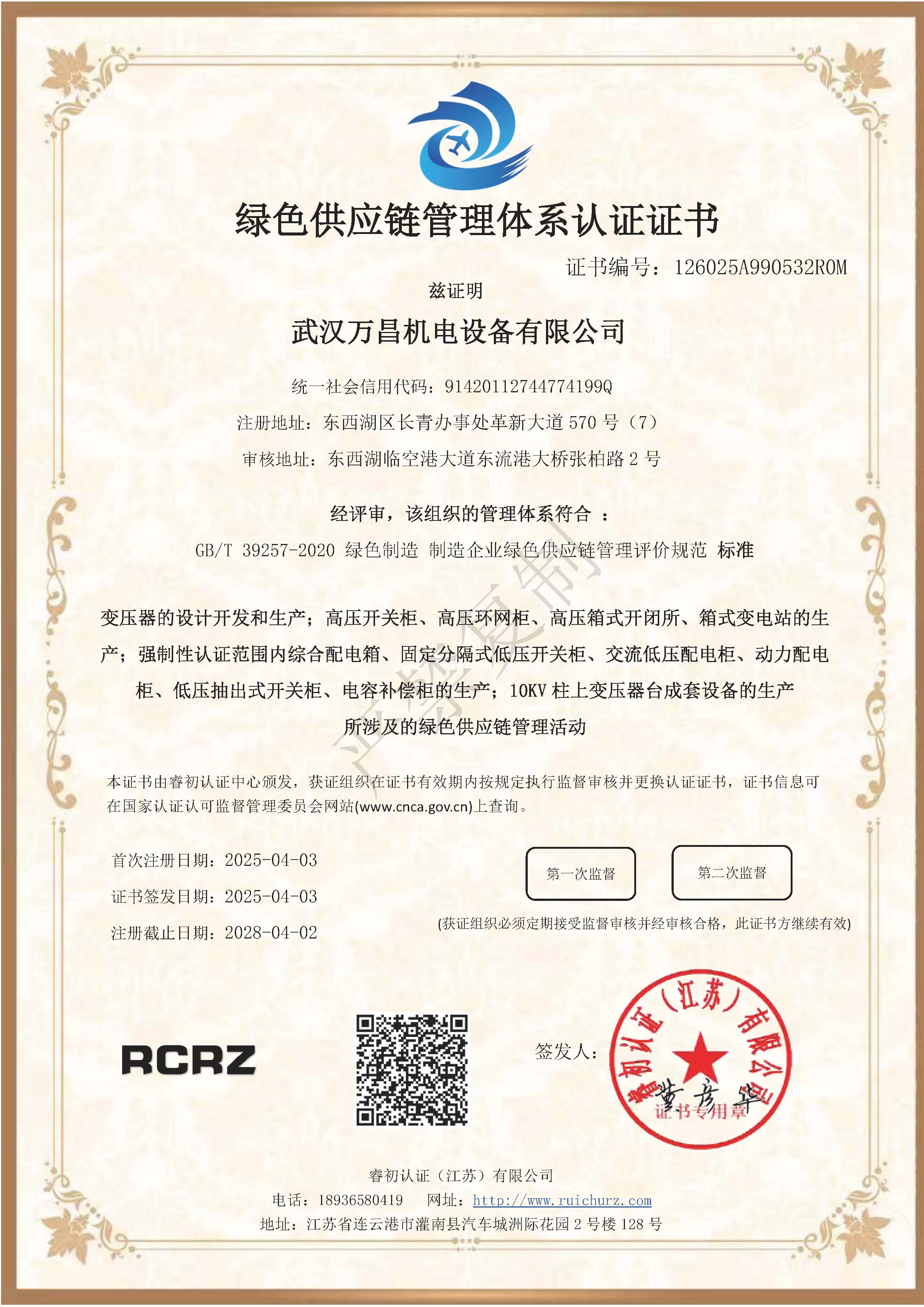 綠色供應鏈管理體系認證證書
